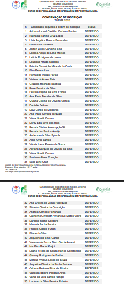 Confirmação de Inscrição dos Candidatos ao Processo Seletivo para Ingresso no Curso de Especialização em Enfermagem em Podiatria Clínica - UERJ